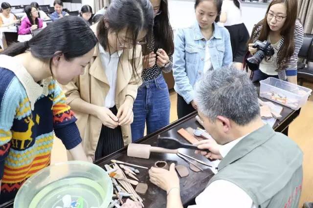5月10日,“中国紫砂印章第一人”宗良纲老师来到逸夫楼6047,为同学们上了一堂“天机巧,却是国材”的紫砂制作课。课堂上,同学们受益匪浅,学习了不少紫砂的理论与制作方式。在老师的指导下,同学们制作出了各式各样的小作品。活动过后老师与同学们进行了交流,现场气氛活跃。