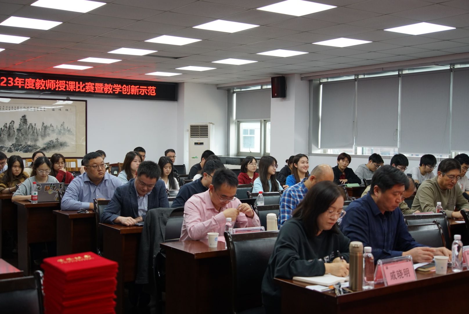 经评委现场打分,聂文静老师获得教师授课比赛一等奖;朱慧劼、张兴宇两位老师获得教师授课比赛二等奖;刘春、韩光、黎海明、尹秋玲、池建华五位老师获得教师授课比赛优秀奖。李明、朱锁玲、朱志平、翁李胜四位老师获教学创新示范荣誉奖。