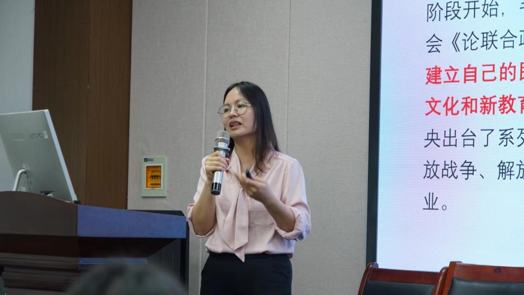 科学技术史系教师党支部、研究生第二党支部、本科第三党支部联合开展主题教育,邀请南京师范大学强化培养学院副书记兼副院长莫春菊副教授,以“加快建设教育强国,为中华民族伟大复兴提供有力支撑”为主题,带领大家学习宣传党的二十大精神。