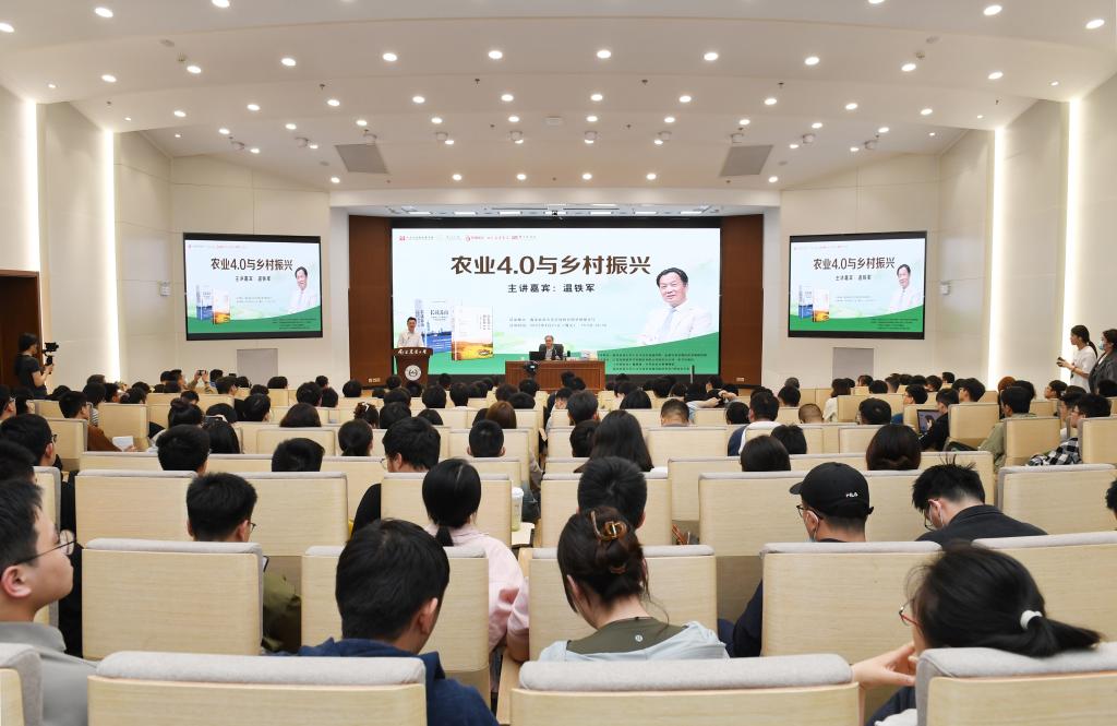 温铁军向南农师生阐释了《从农业1.0到农业4.0》该书题目的由来,表示青年学子做研究最关键之处就是如何形成问题、如何构建清晰的问题意识,并鼓励在场的青年学子践行习近平总书记的殷殷重托,扎根调研一线,将论文写在中国大地上。