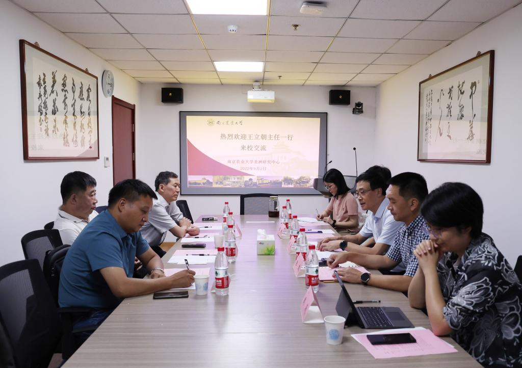 胡锋对王立朝主任一行表示欢迎,并简要介绍了南农的发展历史、国别研究中心情况以及学校对美洲中心的发展规划。胡锋表示,南农关于拉美地区的研究与合作始于上世纪九十年代。该区域农业资源丰富,与中国的农业贸易潜力巨大,学校将继续推进相关合作。一是推动拉美农业文明方面的教学、研究工作,二是加强与拉美地区高校合作,三是配合国家“一带一路”倡议,与“走出去”的中国企业合作,通过“借船出海”,加强中拉全方位的交流。他期待未来与各位专家携手共进,立足更高的视野,在中拉农业科技、文明、文化交流等领域做出新的贡献。