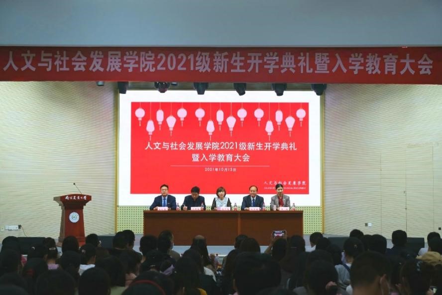 2021级新生开学典礼暨入学教育大会在大学生活动中心隆重举行。校关工委常务副主任、科技史学科点点长盛邦跃,院党委书记姚科艳,院长姚兆余,党委副书记冯绪猛,副院长路璐、朱利群,以及各学科点点长、系主任、新生班主任、教学秘书和辅导员出席了大会,2021级400余名本科生和研究生参加大会。大会由姚科艳主持。