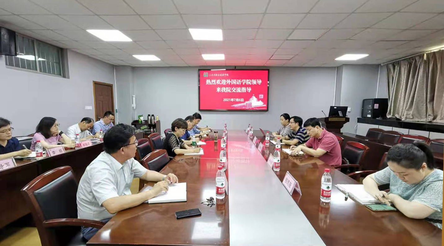 7月6日下午,外国院学院党委书记朱筱玉、副院长马秀鹏、公共外语教学部主任王菊芳、公共外语教学部副主任朱云、办公室副主任桂雨薇一行来疯av