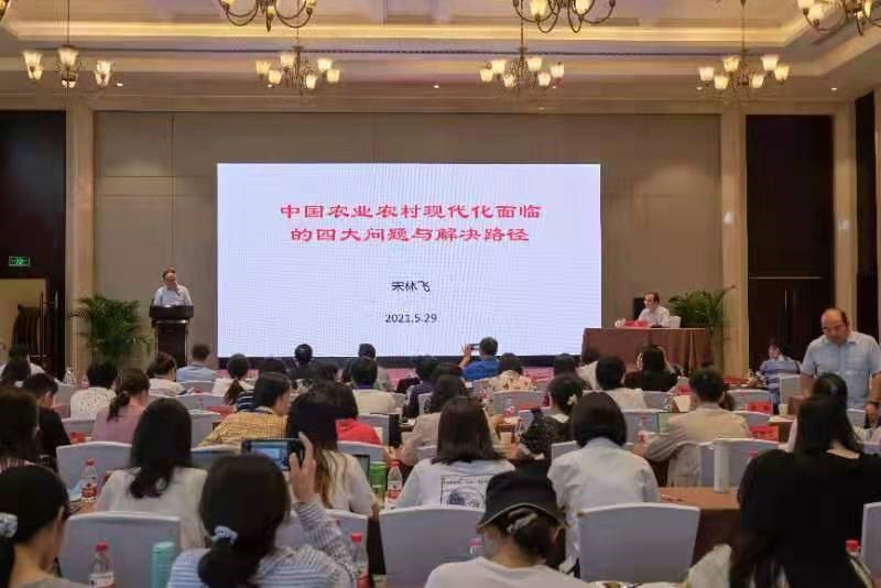 宋林飞教授发言的主题是“中国农业农村现代化面临的四大问题与解决思路”,他从农村“空心化”“小农化”“分散化”“老龄化”四个方面展开讨论。他指出,在“世界处于百年未遇之大变局”的背景下,农业农村现代化是基本实现现代化的难点。解决农村“产业空心化”的解决之道需要推进“五化”:机械化、信息化、服务化、绿色化和安全化。