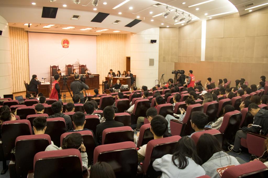 暨合作共建活动。法庭公开开庭审理上诉人江苏今世缘酒业股份有限公司与被上诉人南京某信息咨询公司、某酒类平台公司、某酒业公司、某酒厂侵害商标权纠纷一案,人文、动医、生科等学院200余名师生观摩了庭审,“零距离”感受司法审判的公开、公正、公平。在2个小时的庭审过程中,上诉人与被上诉人双方围绕案件充分辩论,审判长及审判员以娴熟的庭审经验有序把握整个流程,庭审环节明晰、节奏紧凑、推进流畅、说理充分、释法到位,通过“庭审进校园”,还原司法裁判的形成过程,让全校师生了解知识产权审判工作实际,引导师生树立尊重知识,崇尚科学和保护知识产权的意识,真切感受法治的力量。此次庭审活动通过“典型案例、真实庭审、当庭宣判”,反响热烈,受到扬子晚报、法制日报、江苏工人报、金陵晚报、江苏卫视、龙虎网等近20家校外媒体的广泛关注,多家网络平台现场直播整个庭审过程,在线观看人数超过一千万人次。