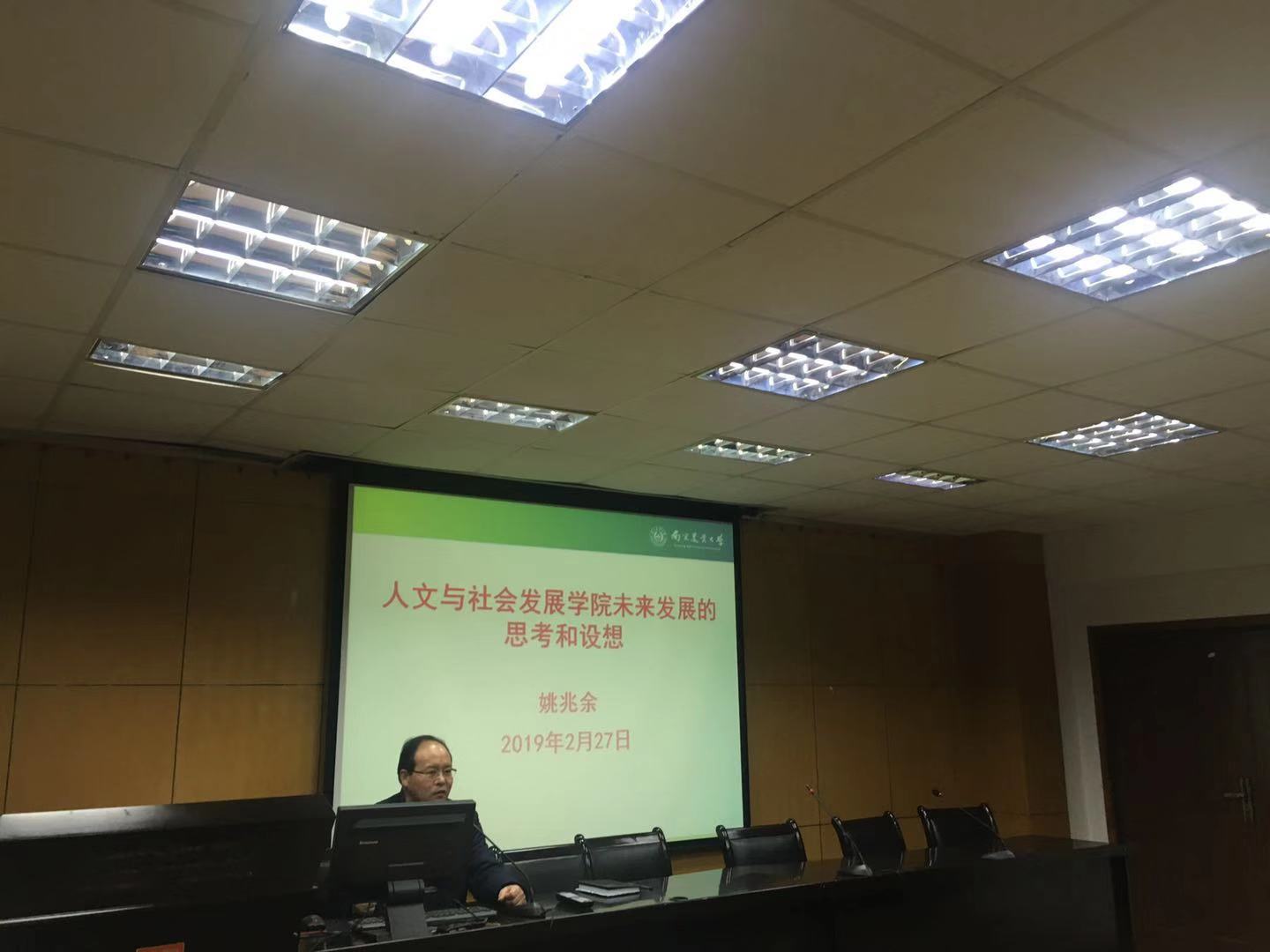 未来发展的思考和设想》专题报告,报告结合学院定位、学科发展、专业建设、科学研究、社会服务、研究生教育、学院管理工作做了详细的分析与思考,并部署了2019年学院的具体工作:加强制度建设、优化学院空间使用、开展人事制度改革试点工作等八大项主要工作。姚院长强调疯av