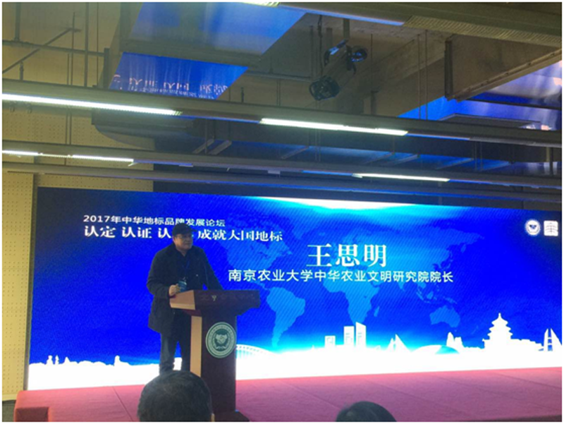 中华农业文明研究院王思明院长针对《农业地标在农业文明发展中的作用》作了主旨发言,他提出,中国历史悠久、幅员辽阔,有着上万年农耕文化的历史。民以食为天,食以品为先,在长期的生产实践中,中国先民创造了灿烂的农业文明,形成了众多享誉世界的特色优质产品。农业地标文化是中国传统文化的重要组成部分。发展农业地标文化是弘扬和传承中国优秀传统文化的有效途径,弘扬农业地标文化对增强中国文化自信、文化自觉有着重要意义。