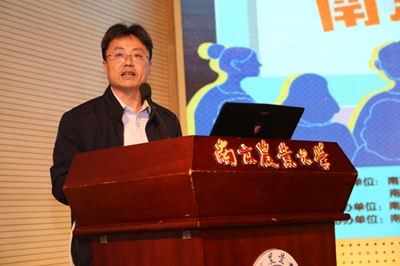 科学研究院产学研合作处处长马海田致欢迎辞。随后,主办方代表南京市农业委员会农业服务业处长郭双庆、副处长刁兵,中央农业广播学校南京分校校长周一波,共青团南京市委员会统战部副部长朱伟上台,为校方代表疯av