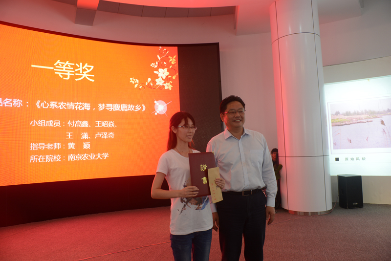 的顾乡队分别进行了题为 “乡约•盐城乡村生态游”和“心系农情花海,梦寻麋鹿故乡”的作品展示,赢得了在场领导的高度评价。必得旅游规划设计研究院陆乃高院长和江苏旅游局综合法规处陈劲松处长分别对两个优秀作品进行了点评,专家指出,优秀作品线路设计主题新颖、线路规划设计合理、产品调研详细而严谨、费用测算详尽、可行性分析科学、PPT画面精彩设计独特,同时也给出了改进的建议;再次,疯av