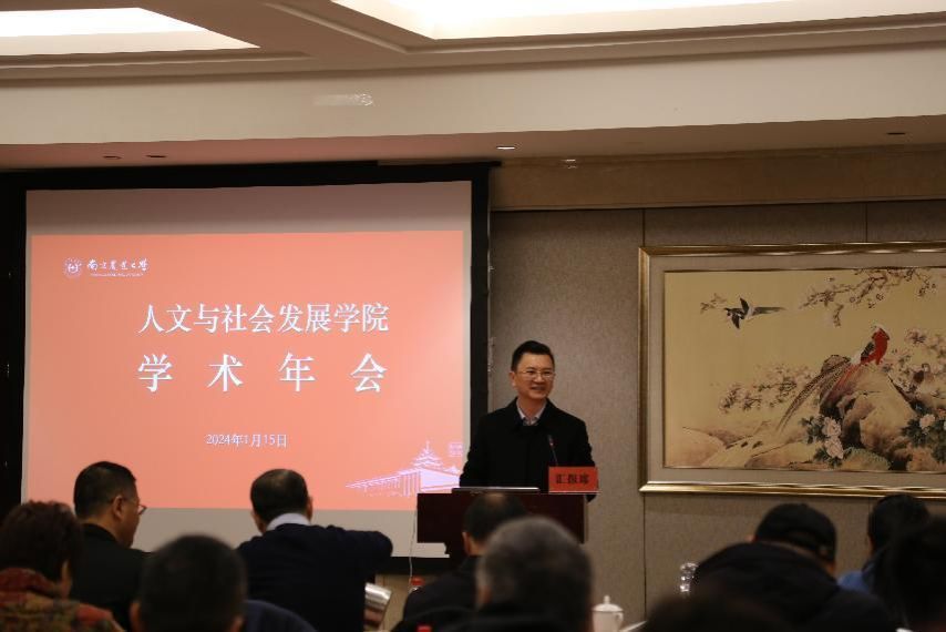 在2023年取得的成绩,并综合最新的国家政策精神,对学院的学科发展作了高屋建瓴的指引;结合学院人才队伍情况,提出了加强人才培育的指导性意见;依据师德师风要求,强调了纪律意识。他希望学院通过此次学术年会,回顾过去一年的亮点业绩,鼓舞士气,振奋精神;对标先进,找出症结,破解难题,共同擘画人文学院的美好未来,谋划人文学院的“诗与远方”。