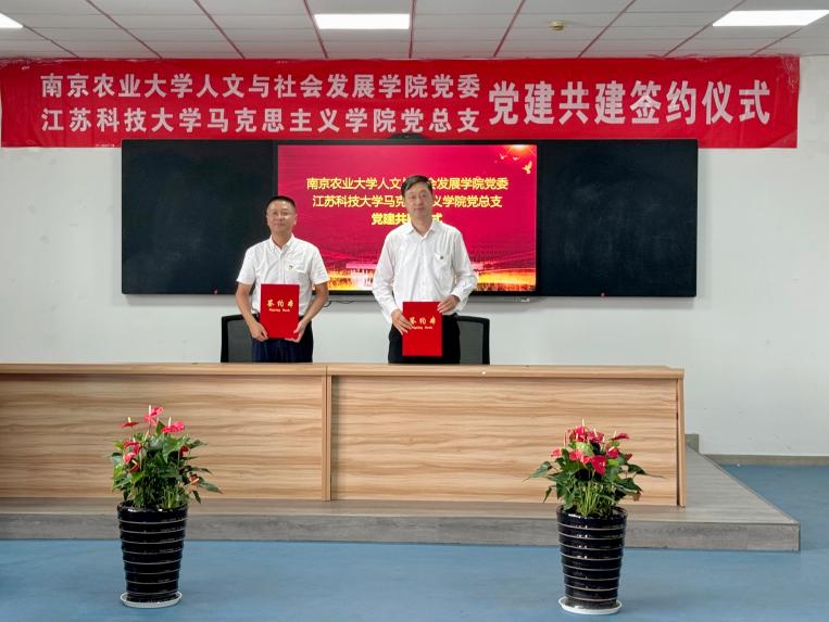 院长卢勇和江苏科技大学马克思主义学院院长洪波代表双方党委(党总支)签订党建共建战略合作协议。