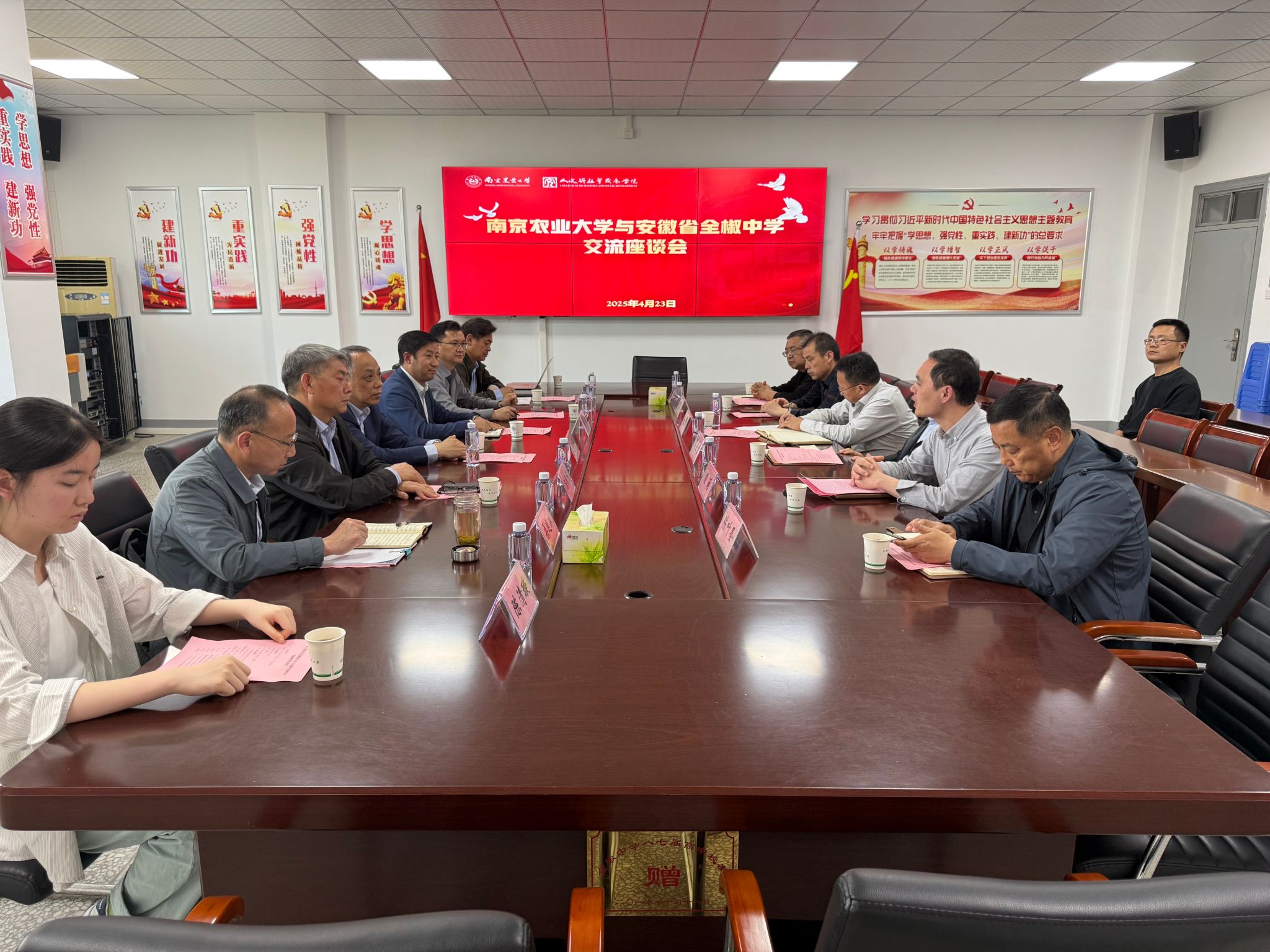 的办学历史、人才培养理念、学科建设成就、科学研究成果等情况。他表示,此次活动是双方在共谋学生成长成才的美好开始,期待未来双方能在更多领域能展开密切的合作。经闽就全椒中学的历史沿革、学生培养、升学情况等方面进行校情介绍。他认为,中学的发展要加强与高水平大学的交流合作,期待未来持续加强合作交流。胡健对南农在当地建设的滁州科教创新园、科教基地情况进行介绍,本次交流促进了两校间的沟通了解。