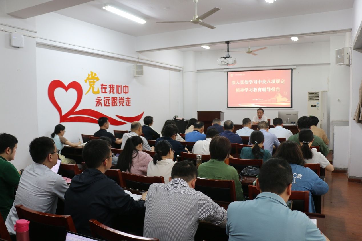 6046报告厅为教师党员作深入贯彻中央八项规定精神学习教育专题辅导报告。辅导报告由学院党委副书记殷美主持,学院领导班子、党委委员,党支部书记、系主任、科技史等支部党员代表参加学习。