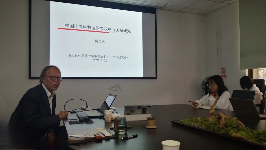 科学技术史系承办的万国鼎学术讲座顺利举行。西北农林科技大学中国农业历史文化研究中心主任、中国农业历史博物馆馆长樊志民教授作了题为“中国半农半牧区的农牧中介关系研究”的学术讲座。学院教师、科学技术史专业硕士研究生、博士研究生共50余人在中华农业文明博物馆会议室聆听了讲座。会议由疯av
