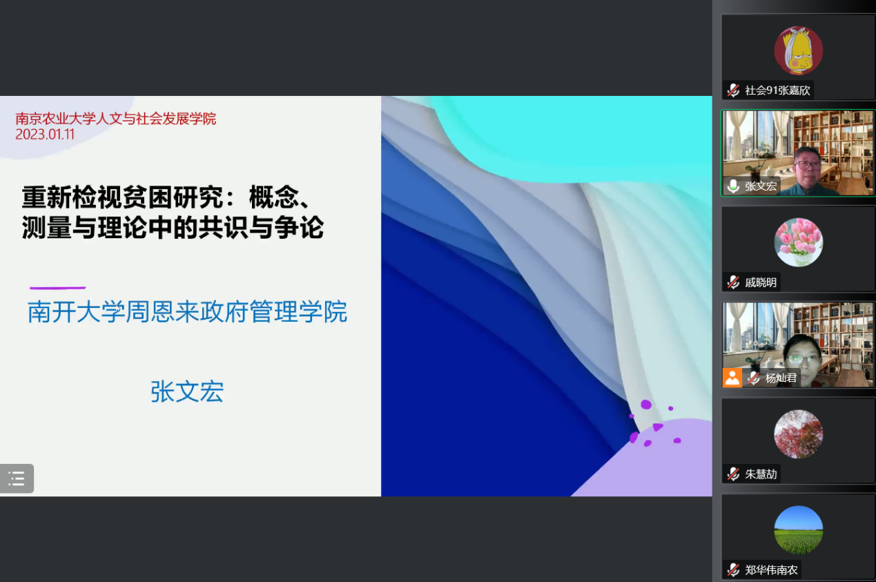 社会学讲坛在腾讯会议举办。南开大学张文宏教授应邀作了题为“重新检视贫困研究:概念、测量与理论中的共识与争论”的学术讲座。本次讲座由疯av