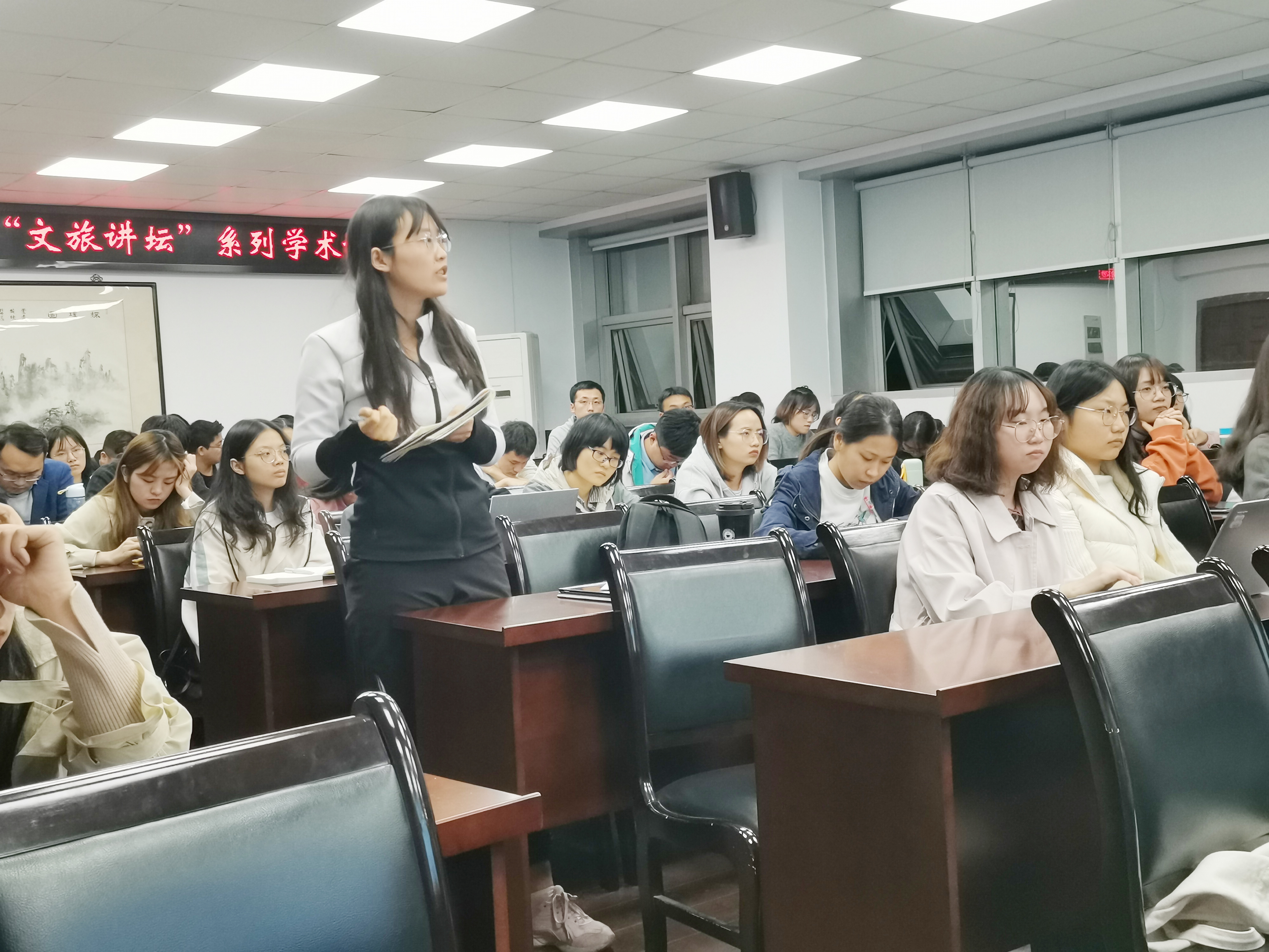 ,为师生们做了一场题为“文旅融合规划理论与实践——以15个文旅融合案例地为例”的学术讲座。讲座由旅游管理系主任崔峰教授主持,旅游管理系本科生、研究生及相关专业学生共计70余人参加,讲座还吸引了来自东南大学、杭州园林设计院南京分院的部分师生。