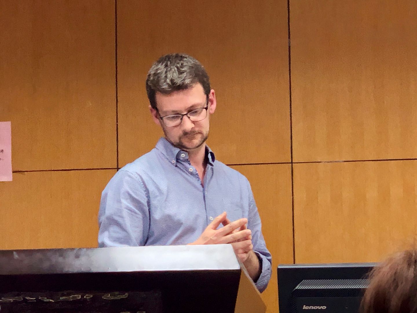 社会学系主任戚晓明主持,特邀南京大学人类学助理研究员冉光沛现场翻译,来自爱尔兰国立科克大学社会学与犯罪学系的青年人类学者James Cuffe 博士发表了题为“Children and Moblie Phones in Irish Village Community”的精彩讲座。江苏省民间文艺家协会副主席张丹、疯av