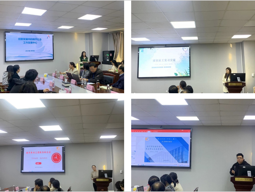 社会工作硕士教育中心的长期合作情况,表示机构拥有经验丰富的居家养老服务经验,能够为南农社工实习生提供广阔的成长空间。悦民社会工作服务中心主任徐晓辉介绍了机构长期以来开展青少年健康成长和权益保护状况。心苑社会工作服务中心翟秀芳主任介绍了机构服务农村失独老人和建设养老服务时间银行的状况,希望研究生将所学的理论知识与实践结合起来,逐步成为能够承担专业服务的社工人才。