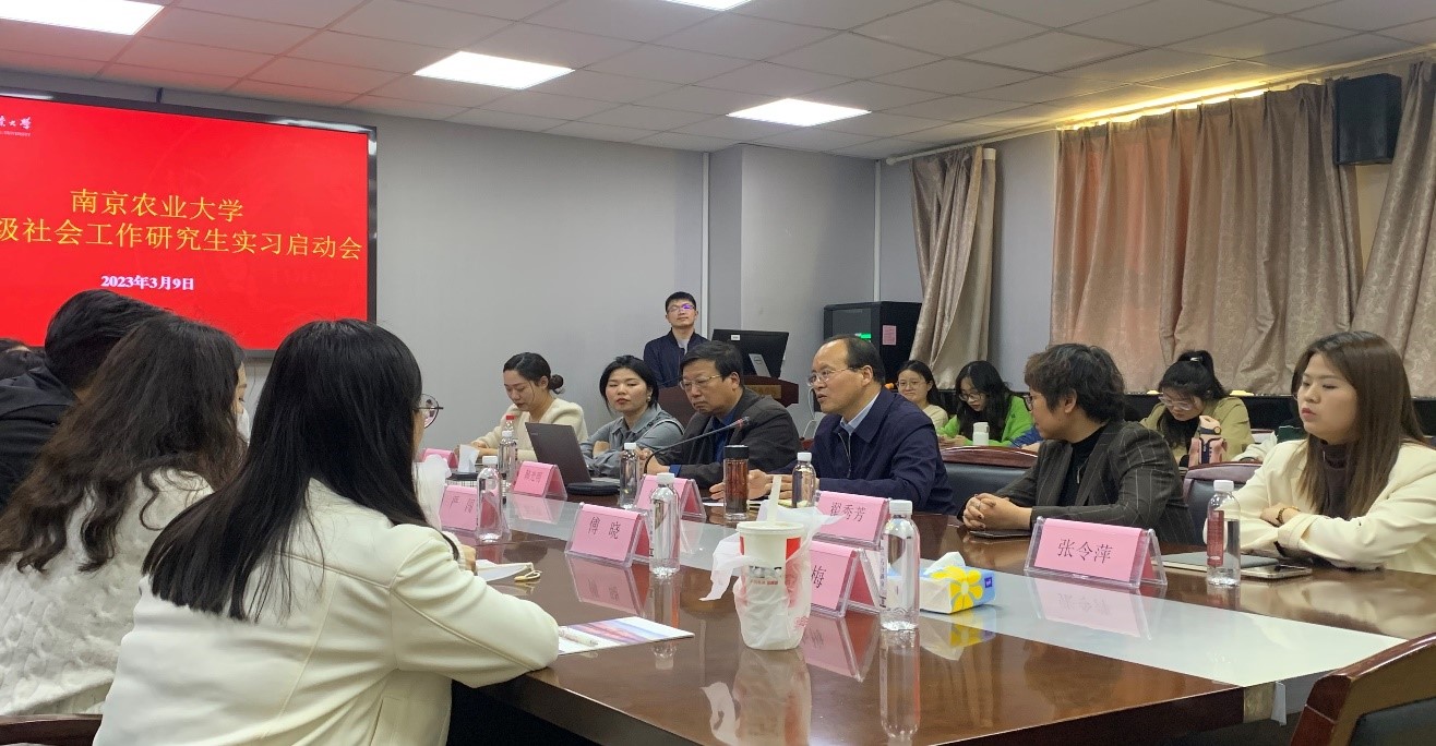MSW教育中心举行2022级社会工作研究生实习启动会。MSW教育中心主任姚兆余教授、MSW教育中心秘书朱慧劼老师,以及南京市城市老年服务中心主任韩光明、心苑社会工作服务中心翟秀芝、晓平社会工作发展中心项目部主任魏红玲、悦民社会工作服务中心主任徐晓辉、乐众社会工作服务中心主任张令萍、江苏智联康健有限公司总经理华夏、南京市养老志愿服务联合会项目部主任赵倩、承阳养老事业发展事务所项目部主任严闯、金苹果社会工作服务中心人事主管林森梅和傅晓、心桥社会工作服务发展中心代表刘亚辰等10家社会服务机构负责人或代表出席了实习启动会会。2022级15名社会工作研究生参加了启动会。会议由姚兆余教授主持。