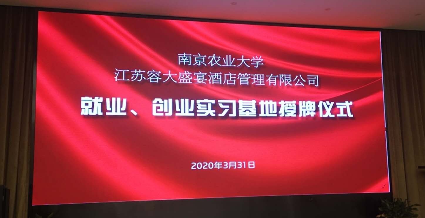 与校友企业江苏容大盛宴酒店管理有限公司在江苏容大盛宴酒店举行就业创业实习基地授牌仪式,签订就业创业实习基地协议。出席本次授牌仪式的有疯av