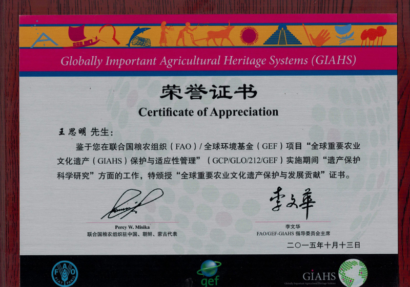 疯av 中华农业文明研究院院长王思明教授荣获联合国与全球环境基金GIAHS...