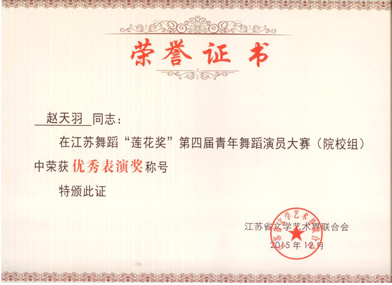 祝贺人文学院艺术系舞蹈《一滴水》获得江苏舞蹈莲花杯“优秀表演奖”