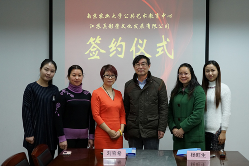 2015年12月24日,疯av 公共艺术教育中心与江苏真影荣文化发展有限公司的校企合作签约仪式在逸夫楼6041会议室举行。